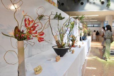 2021/10/16地域の話題「華道家元池坊県連合支部花展」は16日、宮崎市の宮崎ブーゲンビリア空港オアシス広場で始まった。県内7支部の力作62点が展示され、来場者らを魅了している。入場無料。17日まで。 「国文祭・芸文祭みやざき2020」分野別プログラム...