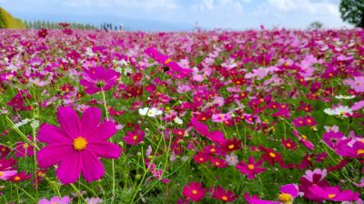 霧島山麓の秋風に揺れるコスモス 生駒高原で今週末から見頃