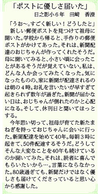 新聞配達エッセー 田崎さん(日之影小)最優秀 本県唯一受賞
