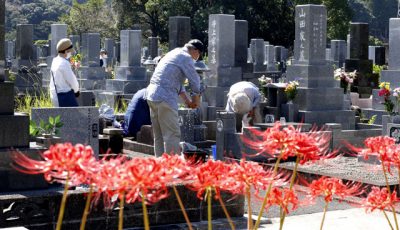 2021/09/24県内一般ニュース秋の彼岸の中日となった23日、県内は全域で青空が広がり、各地の墓地では先祖や故人をしのぶ人の姿が多く見られた。 宮崎市池内町の宮崎みたま園では午前中から家族連れらが次々と訪れ、墓石を清掃した後、花や線香を供えていた。同市平和が丘東...