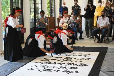 世界平和とコロナ終息願う 宮崎大宮高書道部が揮毫