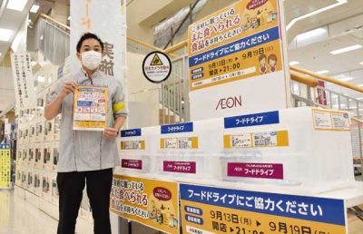 2021/09/15きょうの出来事家庭で余った食品の寄付を募る「フードドライブ」が、宮崎市のイオン宮崎店で行われている。同市の市民団体「フードバンクみやざき」が協力し、集まった食品は同団体を通じて困窮世帯支援団体や子ども食堂などに届けられる。 同店食品売り場の一角...