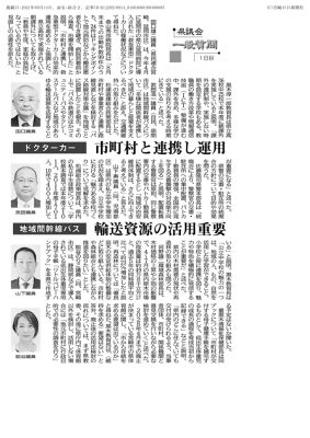 2021/09/14紙面から/1日目/ドクターカー/市町村と連携し運用/地域間幹線バス/輸送資源の活用重要 田口雄二議員(県民連合宮崎、延岡市区)は、今年4月に延岡市の県立延岡病院に導入された「救急車型」ドクターカーの稼働状況などについて尋ねた。 桑山秀彦...