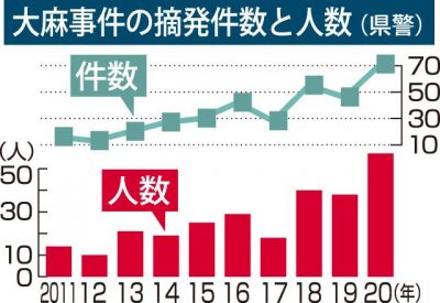 大麻摘発57人 若者大半 県内昨年、過去10年で最多