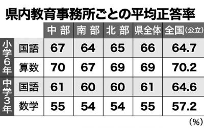 学力テスト 本県中学、全国と差拡大 小学国語は上回る