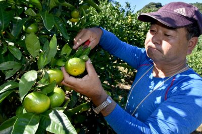 2021/08/28きょうの出来事温暖な気候を生かし、県内有数の生産地となっている日南市の名産「極わせミカン」の今季の収穫が始まった。市内のミカン農園では28日、濃い緑の皮がうっすらと黄色に色付き始めた実を、農家がはさみで一個一個丁寧に収穫。9月下旬まで出荷が続く。 ...