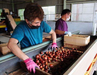 2021/08/24県内一般ニュース美郷町で特産の秋の味覚「美郷栗」のわせ品種の出荷がピークを迎えている。同町西郷のJA日向西郷支店の選果場では23日、生産農家が次々と持ち込むクリの選果に追われていた。 同JAによると、今年は実は小ぶりながら収量は多めという。梅雨明...