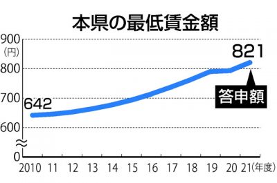 本県最低賃金最高821円 過去最大28円上げ 地方審答申