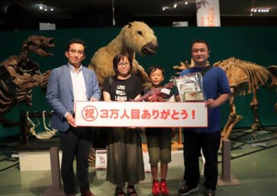 2021/08/07県内一般ニュース宮崎市の県総合博物館で開かれている特別展「絶滅モンスター展2021~恐竜VSほ乳類~」(宮崎日日新聞社など実行委主催)の来場者が6日、3万人を突破した。 3万人目となった宮崎市・池内小5年の甲斐聖七(せな)君(11)に、同展特別協...