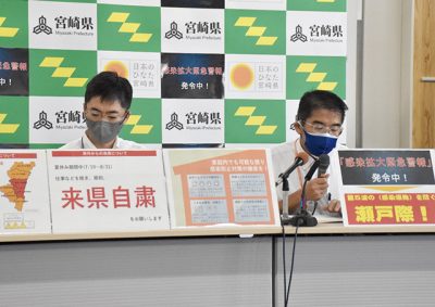 2021/08/07社会news県と宮崎市は7日、県内で新たに10歳未満~80代の男女40人の新型コロナウイルス感染が確認され、同市内では新たに高校の運動系部活動と、複数家族の交流による2件のクラスター(感染者集団)が発生したと発表した。新規感染者は「第5波」で最多とな...