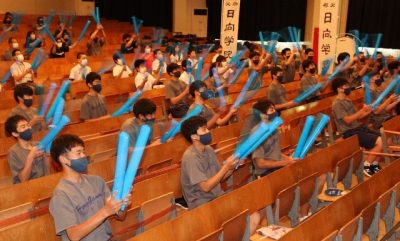 母校から「李博先輩頑張れ」 日向学院高生ら観戦