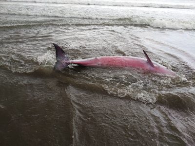木崎浜 クジラ2頭漂着 1頭戻れず救出継続へ