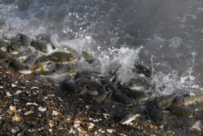 2021/05/03地域の話題延岡市鯛名町の海岸で、クサフグの産卵が始まった。岸に押し寄せた群れが水しぶきを上げて、神秘的な命の営みを繰り広げている。 宮崎大農学部の村瀬敦宣准教授(沿岸生態学)によると、鯛名町の海岸では4月から産卵が始まり、5~7月にピークを...