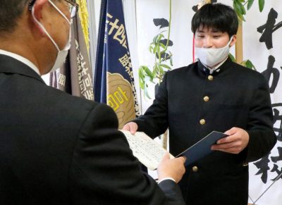 2021/04/28県内一般ニュース県高校体育連盟(県高体連)と県高校文化連盟(県高文連)の本年度統一スローガンに、高鍋高3年の黒木国登(こくと)さん(18)の「1人じゃ交わせぬ心のセッション皆で高める夢へのパッション YEAH!」が選ばれた。27日に同校で表彰式が行われ、...