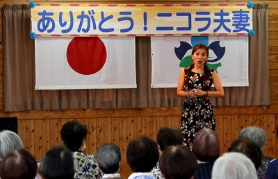 2025/08/14地域の話題公民館に凱旋―。都城市高城町出身でイタリア在住のソプラノ歌手黒木真弓さんのコンサートは8日、同町の第一自治公民館であった。地域住民らが手作りした温かい雰囲気の会場で、約100人が一流の調べに酔いしれた。 黒木さんの母美智子さん(9...