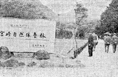 2021/04/22懐かしシリーズ県民のレクリエーションの場となる宮崎自然休養林の山開きが、九州の3休養林のトップを切って21日から宮崎市鏡洲の加江田野営場で行われた。 神事のあと、松形熊本営林局長、清山宮崎市長らが遊歩道入り口に設けられたテープにはさみを入れ、歩...