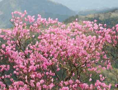 2021/04/21トピックnews諸塚村の諸塚山(1341メートル)の登山道で、アケボノツツジが見頃を迎えている。鮮やかなピンクの花が、吹き渡る風に揺れている。 アケボノツツジはツツジ属の落葉低木。枝の先に5センチほどの釣り鐘形の花をいくつも咲かせる。五ケ瀬町から...