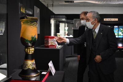 2021/04/08県内一般ニュース綾町のガラス工芸作家で、国の「現代の名工」に選ばれている黒木国昭さん(76)の個展「第45回黒木国昭展」は7日、宮崎市の宮崎山形屋新館5階大催場で始まった。華やかで透明感のある花器など約500点が並び、訪れる人を魅了している。12日まで。...