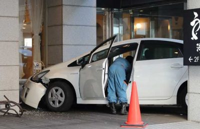 ホテルの外壁に車衝突 けが人なし