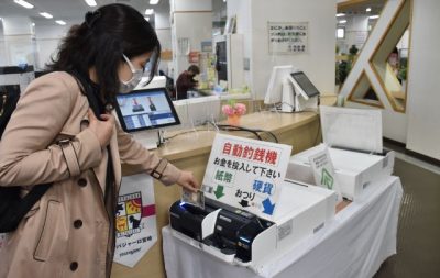 新富役場窓口に非接触型レジスター コロナ対策、県内自治体初