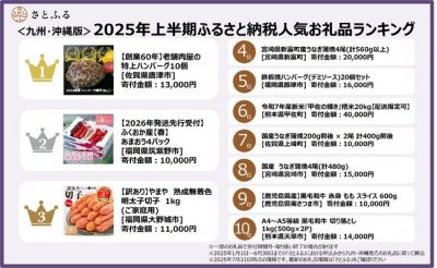 【さとふるニュースレター】<九州・沖縄版>2025年上半期ふるさと納税人気お礼品ランキング 九州の特産品が並んだTOP10。夏の風物詩「うなぎ」の人気も高まる