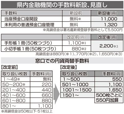 県内銀行や信金、手数料見直しへ 管理費膨大、新設や引き上げ