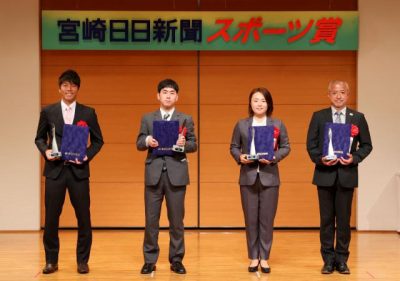 2021/02/23県内一般ニュース国内外のスポーツ大会で優れた成績を残したほか、競技発展や振興に寄与した本県ゆかりの個人・団体を表彰する第25回宮崎日日新聞スポーツ賞の贈呈式は22日、宮崎市の宮日会館であった。4個人1団体(うち特別賞1人)の栄誉をたたえた。 式典...