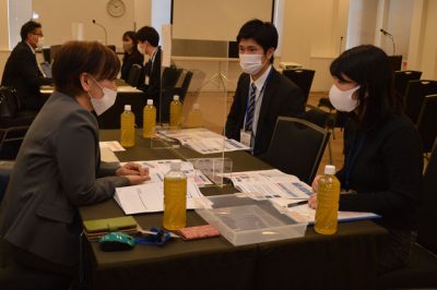 2021/02/22県内一般ニュース本県での就職に関心のある首都圏の学生と企業をつなぐ業界研究セミナー「みやざき×働く」ミーティング(宮崎日日新聞社主催)は21日、東京都港区のTKP田町カンファレンスセンターであった。就職活動を控える大学や専門学校に通う学生9人が参加し、製...