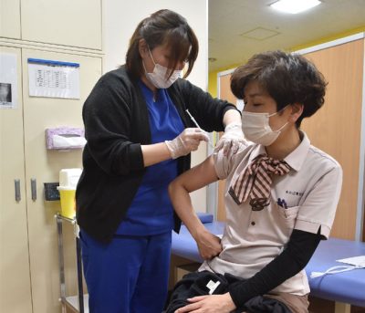 2021/02/12社会news3月中旬にも医療従事者を対象に始まる新型コロナウイルスのワクチン接種に向け、延岡市のあたご整形外科(佐藤信博理事長)は12日、病院スタッフ約40人が接種の手順や必要な時間、感染対策を確認する実地訓練を行った。1時間当たりの接種人数45人は...