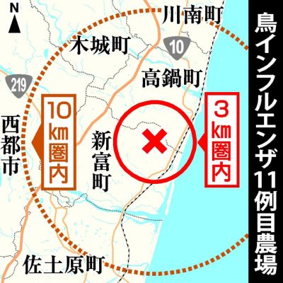 新富鳥フル、疑似患畜 今季11例目、24万羽殺処分開始