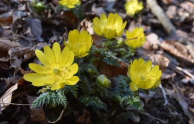 春告げる黄色いかれんな花 高千穂町向山にフクジュソウ