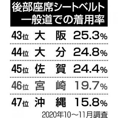 本県19.7%、ワースト2位 後部座席シートベルト着用率