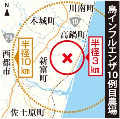 2021/02/01県内一般ニュース鳥インフルエンザの簡易検査で陽性反応が出た新富町の採卵鶏養鶏場の鶏について、県は31日、PCR検査で致死率の高い高病原性の疑いがある「H5型」ウイルスの遺伝子が検出されたと発表した。国は県内で今季10例目の疑似患畜と判定。県は発生農場から...
