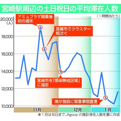 宮崎駅前 人出最大5割減 1月の土日祝 昨年11月比