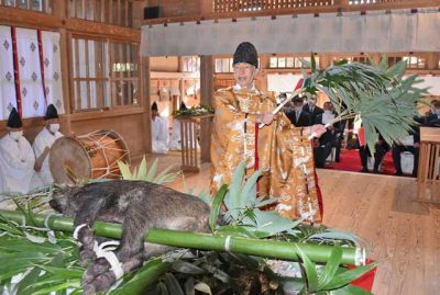 鬼八の魂鎮め豊作願う 高千穂神社で「猪掛祭」