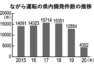「ながら運転」県内大幅減 20年まとめ 厳罰化効果?