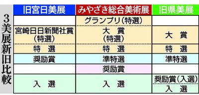 2021/01/12県内一般ニュース宮日総合美術展と県美術展を統合した「第1回みやざき総合美術展」(実行委主催)の開催が迫り、22日から作品搬入が始まる。賞の形態は新しくなり、全7部門の中から1点に、開催記念グランプリ「文化コーポレーション賞」(賞金50万円)を贈る。出品規...
