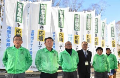 福島高 入学者増向け応援 卒業生のぼり旗製作