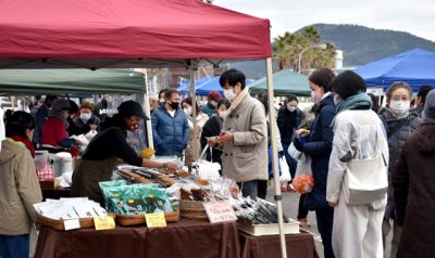 2020/12/29地域の話題新型コロナウイルスの影響で中止となっていた定期市「なんごう日の出市」(実行委主催)は29日、日南市南郷町の港の駅「めいつ」前で10カ月ぶりに開かれた。市内の15店舗が出店。市内外から多くの人が集まり、新鮮な魚や地どれの食材を買い求めていた...