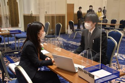 対面説明 熱心に 大学生ら新卒就職フェア 宮崎市