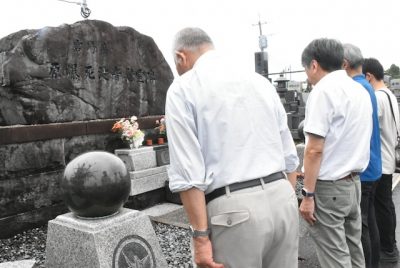 2025/08/09きょうの出来事被爆から80年の長崎原爆の日となった9日、「県原爆死没者を慰霊・供養する集い」(同実行委主催)が、宮崎市本郷北方の宮崎霊園であった。被爆二世や市民ら6人が参列。犠牲者の冥福を祈り、平和への思いを強くした。 原爆がさく裂した午前11...