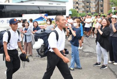宮崎商ナイン「おかえり」 甲子園奮闘 保護者ら拍手