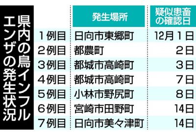 2020/12/18県内一般ニュース都農町の養鶏場で発生した県内2例目の高病原性鳥インフルエンザについて、県は17日、周辺の鶏への感染がないか調べる「清浄性確認検査」で陰性を確認し、発生農場から半径3~10キロ圏内の搬出制限区域を解除した。半径3キロ圏内の移動制限区域は、新...