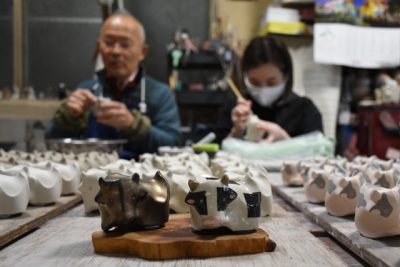 コロナ収束願い「うしあわせ」 三股焼紫麓窯、干支ぐい飲み製作