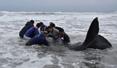 新富・富田浜クジラ漂着 町民ら必死の救出実らず