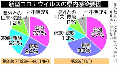 11月の県内コロナ感染要因 「会食」「職場」70%