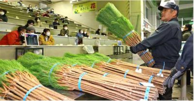 2020/12/06県内一般ニュース縁起物として正月飾りに使われる松が競りに掛けられる年末恒例の「松市」は5日、宮崎市公設地方卸売市場花き棟であった。特産地の茨城、愛媛県産の若松や、本県産の五葉松、大王松など約2万本が出品され、競り場に威勢のいい掛け声が響いた。 競...
