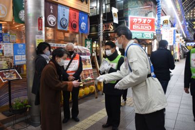 2020/12/02県内一般ニュース人の往来が増え、新型コロナウイルスの感染リスクが高まる年末年始を前に、感染防止対策の徹底を求めようと、県と宮崎市は1日、街頭啓発活動を行った=写真。河野知事と戸敷正市長、飲食業団体関係者ら約15人が同市の繁華街・ニシタチの飲食店3店舗を巡...