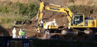 400人態勢 過酷な作業 日向・養鶏場4万羽埋却 鳥フル