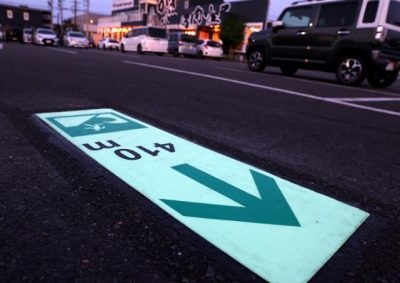 青島に蓄光式誘導標識 安全な夜間避難手助け